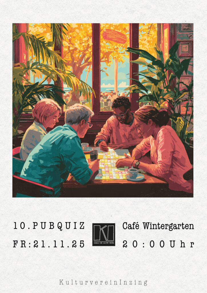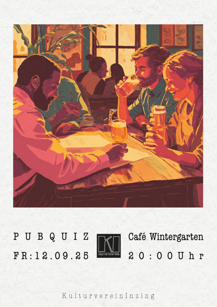 Wir laden wieder am Freitag, den 12. September ins Café Wintergarten zur mittlerweile 9. Auflage des Pubquiz. Reservierungen wie üblich bitte direkt im Lokal, wir freuen uns auf Euch!